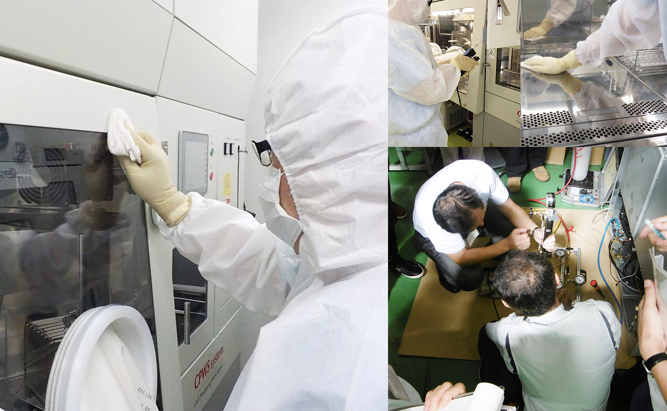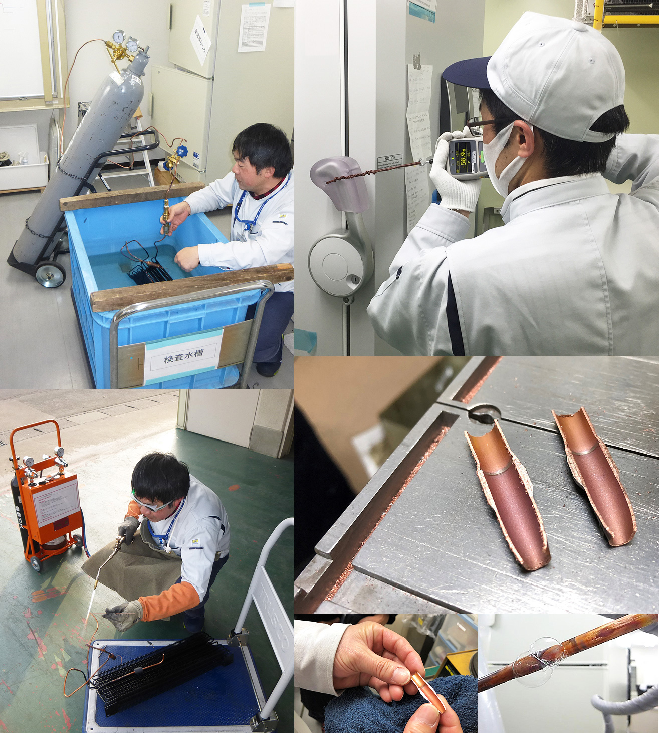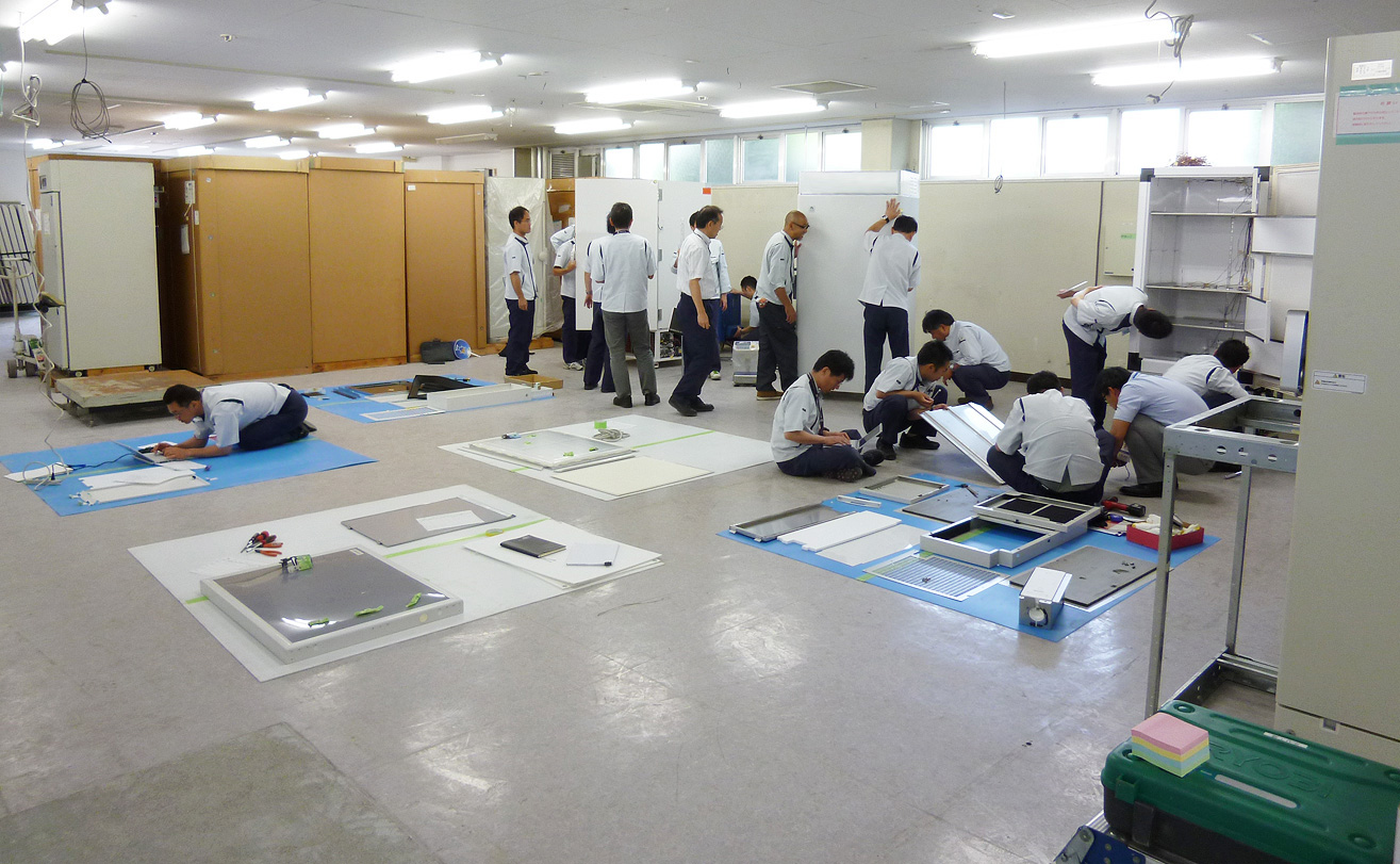 Our technical support service teams receive extensive training at regularly scheduled intervals. Technical support Service staff from around the world attend the annual training sessions at the Gunma factory. They learn about correct product maintenance and are trained to perform other important procedures such as exchanging and filling refrigerants using state-of-the-art processes and procedures.