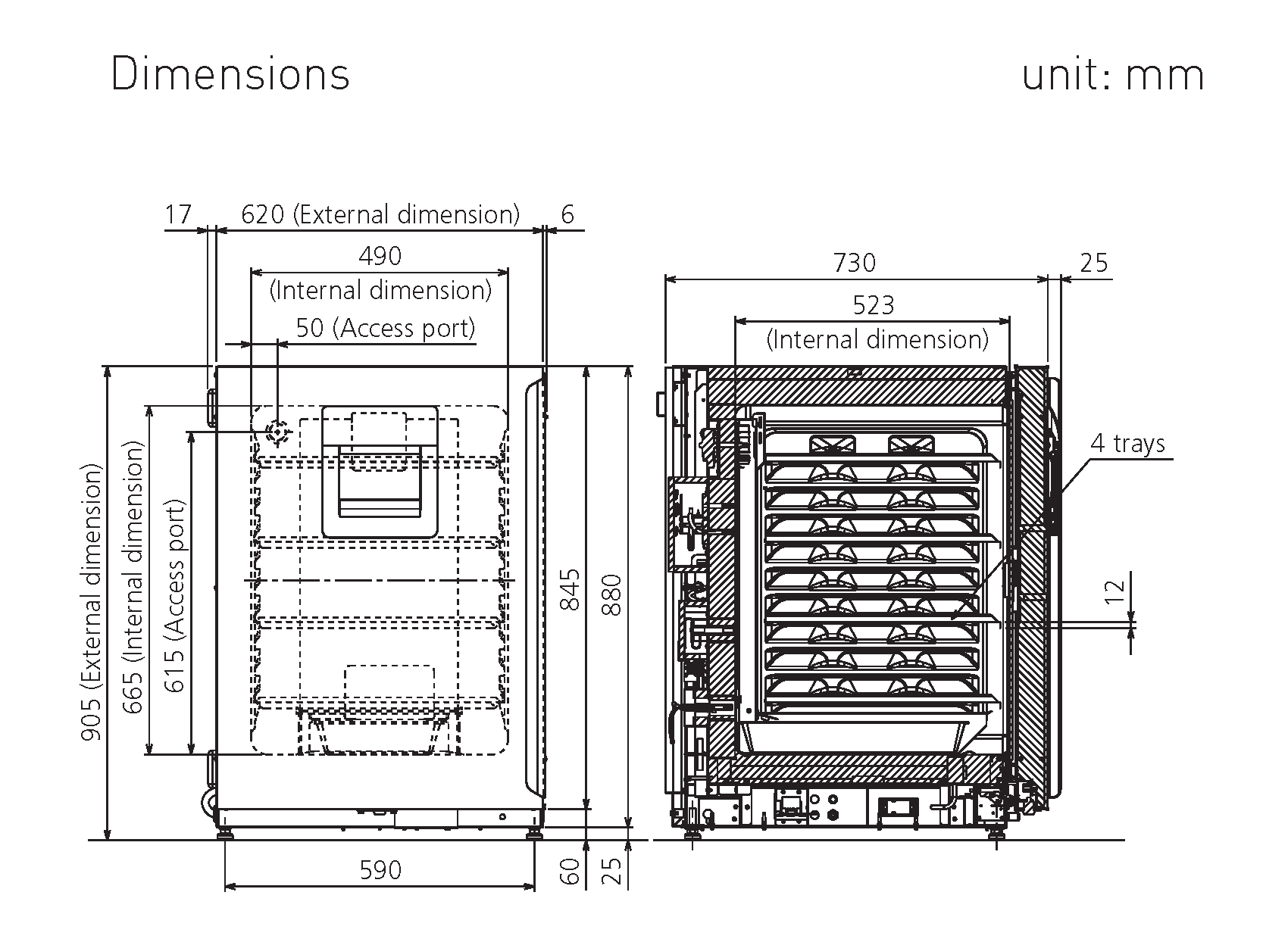 Cleaning the chamber is easier and more efficient as the shelf support section minimises the interior items used. It is now possible to place 20 100ø mm Petri dishes on each tray.
