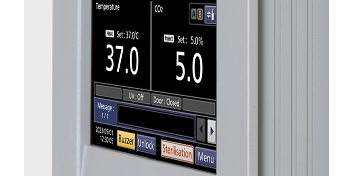 The full-colour LCD touch panel allows efficient management of the functions. The USB port next to the panel enables transferring logged data to memory devices. The new designed incubator has an improved easy-to-grasp handle.