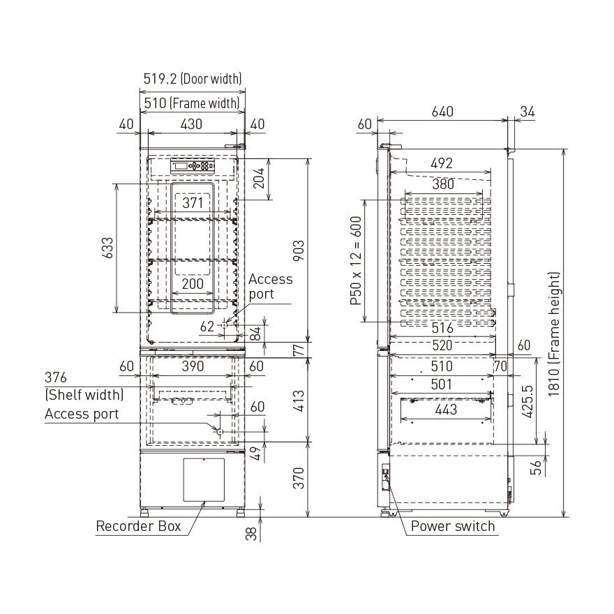430 x 516 x 903 mm (Ref) / 390 x 501 x 413 mm (Frz)