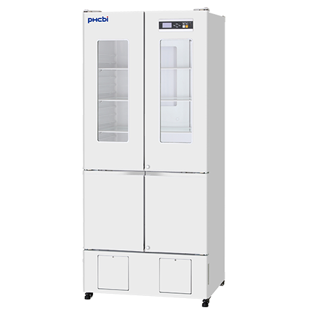 The microprocessor controller and LED display are door mounted at eye level. Control buttons allows convenient but secure user control. Refrigerator and freezer temperatures can be displayed in 0.1°C increments simultaneously or individually. Minimum/maximum temperatures are automatically displayed every 24 hours.