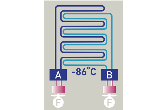 Our state-of-the-art TwinGuard ULT Freezers utilize two independent refrigeration systems to maintain the ultra-low temperature environment even if one cooling circuit unexpectedly fails. This design offers unparalleled levels of safety and peace of mind.