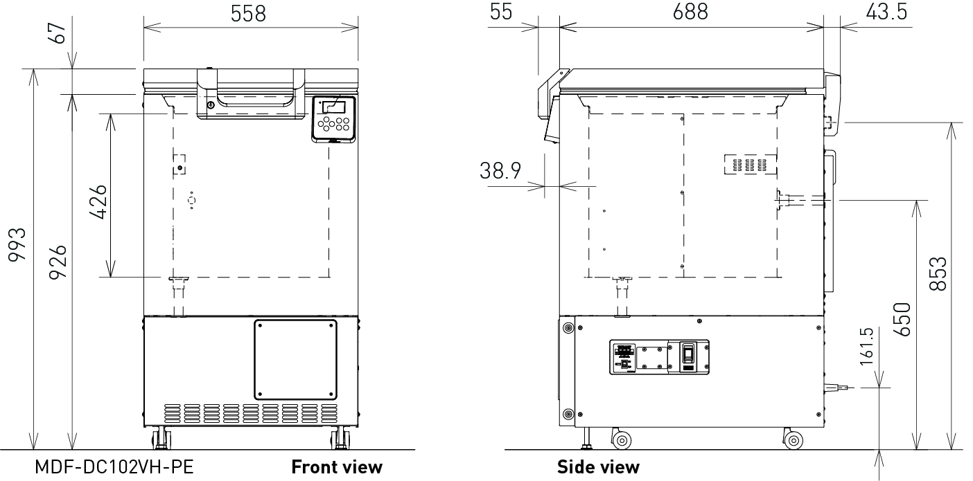The use of patented VIP PLUS panels within the freezer cabinet provides a reduced wall thickness for maximum interior volume. This technology allows the MDF-DC102VH-PE and MDF-DC202VH-PE to require a small installation space with a great storage capacity.