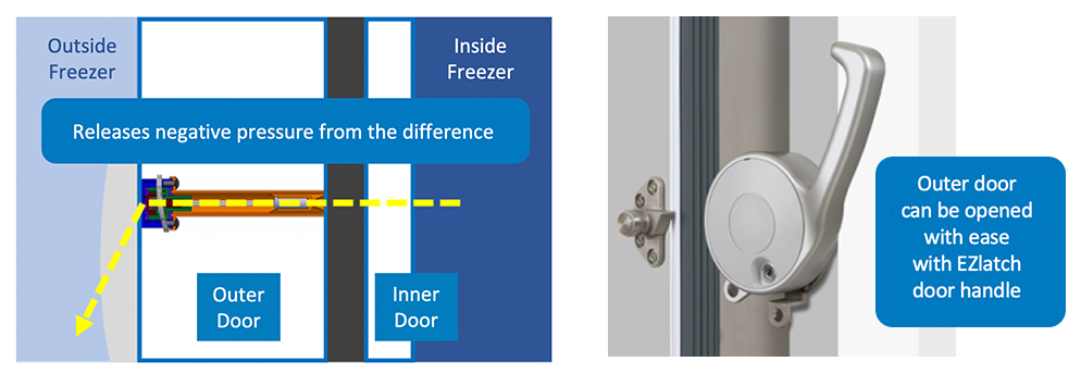 The ‘negative pressure’ generated by the difference in air pressure between the outside environment where the freezer is installed and the inside of the unit makes it difficult to open and close the door.