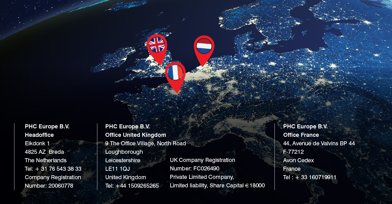 Unsere Produkte und Dienstleistungen werden durch gut etablierte und dynamische globale, regionale, nationale und lokale Netzwerke hochqualifizierter Mitarbeiter und maßgeschneiderter Einrichtungen geliefert. Mit mehr als 30 Jahren Fachwissen und Erfahrung ist PHC Europe gleichbedeutend mit Qualität in: