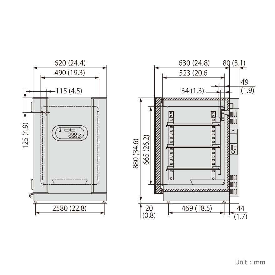 - Interior, estantes y cámara con aleación de cobre inoxidable de InCu-saFe PHCbi