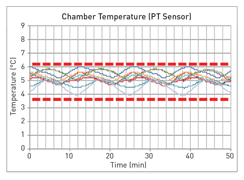 Gracias a los nuevos compresores inversores, la velocidad puede ajustarse para mantener gradualmente la temperatura de la cámara y controlarla pico a pico: 2,1 ºC