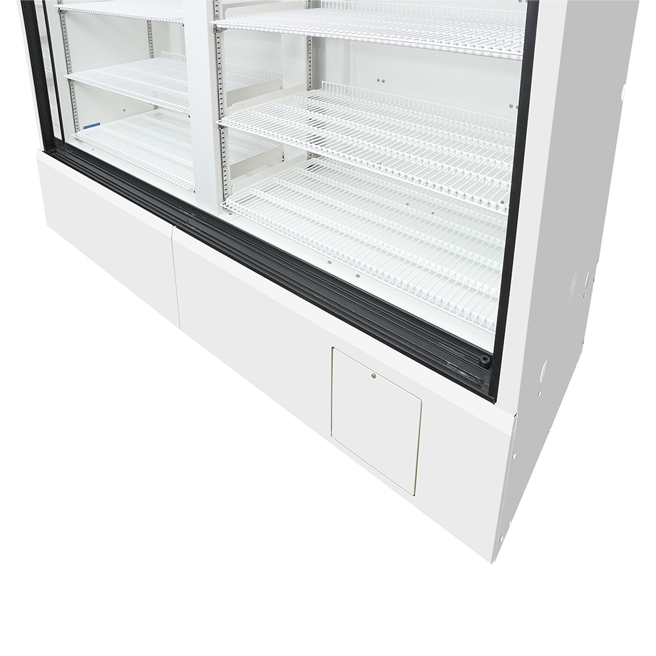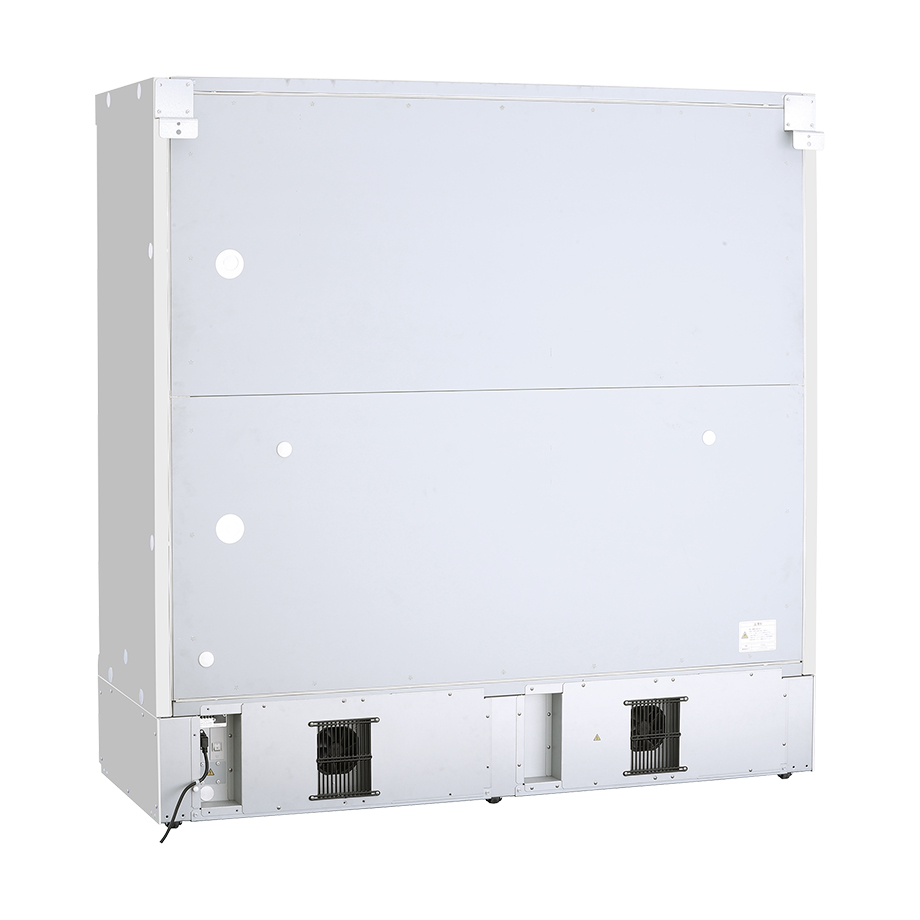 El cristal de varias capas de alto aislamiento con revestimiento Low-E (baja emisividad), encapsulado con gas argón, y el aire caliente que sopla desde la parte inferior, reduce significativamente la condensación en las puertas de cristal, garantizando un rendimiento a alta temperatura.