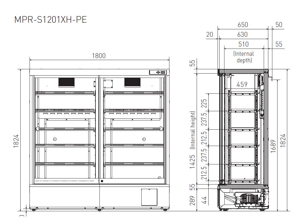También ofrecemos el MPR-S1201RXH-PE, este refrigerador farmacéutico con puerta corredera contiene 6 estantes y 10 cajones en lugar de solo 12 estantes como el MPR-1201XH-PE.