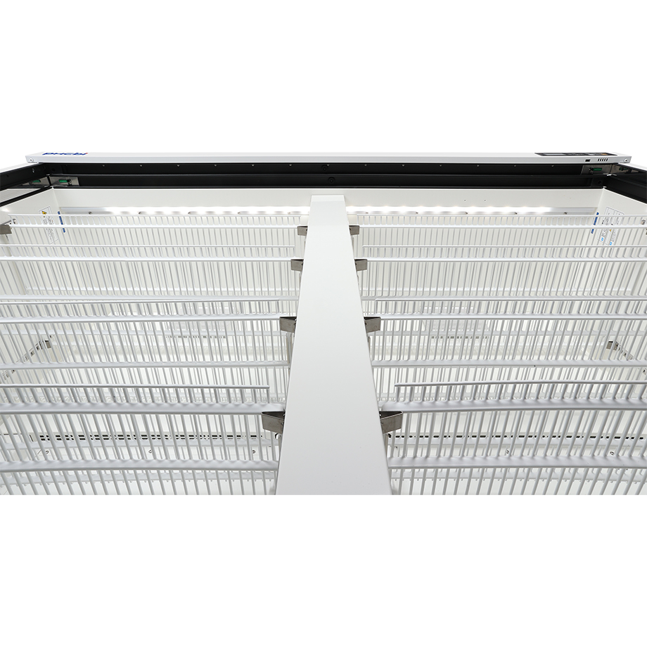Los refrigerantes naturales HC, los compresores controlados por inversor y el nuevo sistema Cycle Defrost, junto con el diseño mejorado de las puertas deslizantes de cristal, se combinan para mejorar la gestión de la temperatura y aumentar la eficiencia energética.