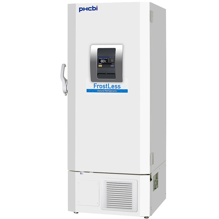El congelador vertical MDF-DU500ZH-PE FrostLess –86 °C reduce la formación de escarcha en las puertas internas. Proporciona una capacidad óptima de almacenamiento de muestras en un espacio compacto combinado con refrigerantes naturales para reducir al mínimo el consumo de energía, reducir el impacto ambiental y ahorrar dinero.