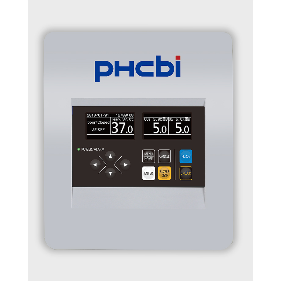 - PHCbi proprietary single-beam, dual detector infrared (IR2) CO2 sensor