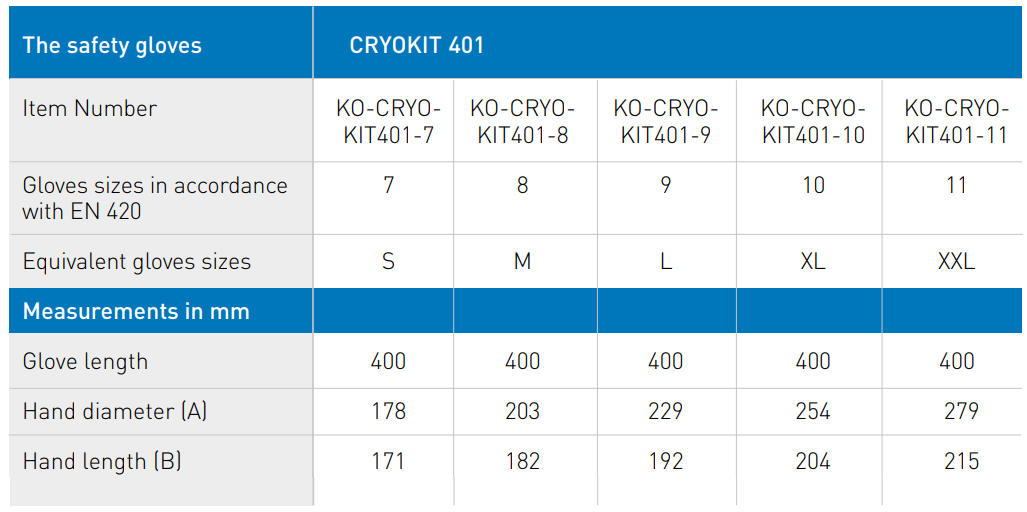 CRYOKIT® GLOVE is a fully waterproof glove to protect the hand and the arm in operations that involve the use of Liquid Nitrogen (or other cryogenic liquids and gases). Made with specially designed composite materials for this application, it keeps the hands warm and dry even for long periods of use. The multi-layered construction allows a high level of thermal protection, flexibility and dexterity at -200 °C.