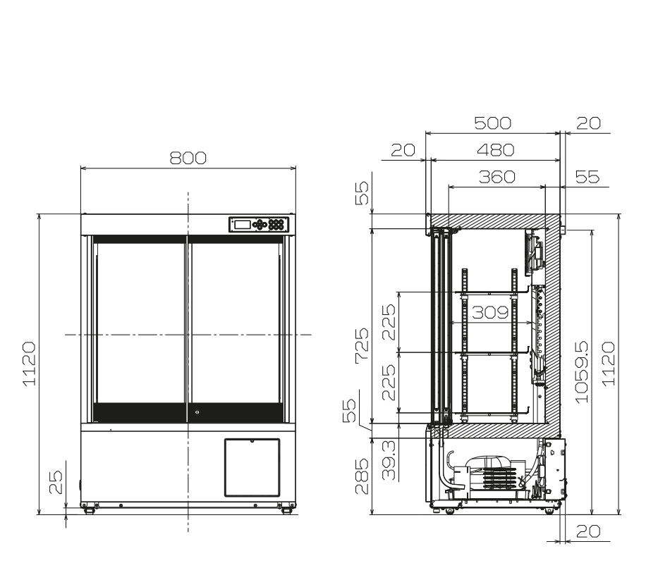 Double glass separated by an extra wide 12 mm gap contains argon gas to protect sample from exterior heat. Combined with air blowing up from the chamber bottom, the unit completely safeguards samples and maximise energy efficiency.