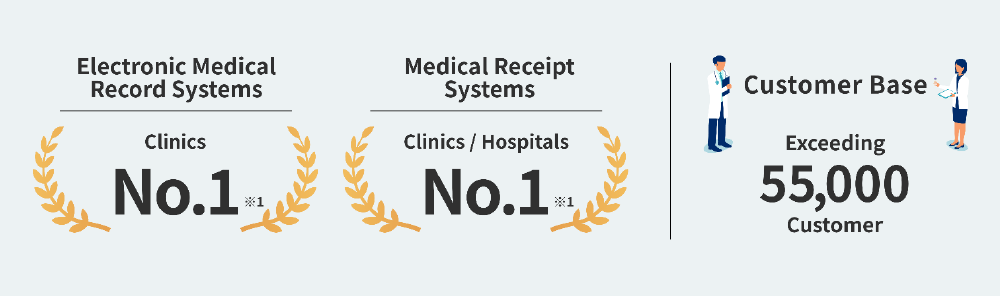 Since developing and releasing Japan’s first medical-receipt computer in 1972, the healthcare IT business that is now Wemex has spent over 50 years revolutionizing operations in the medical industry through the power of digital technology, all while continuously adapting to changes in society and government policies. Leveraging its advanced technological expertise, a strong base of over 40,000 customers, and a well-established nationwide support network, Wemex currently holds the No. 1 market share*2 in electronic medical record systems (EMR) for clinics and medical-receipt computers for clinics and hospitals in Japan.