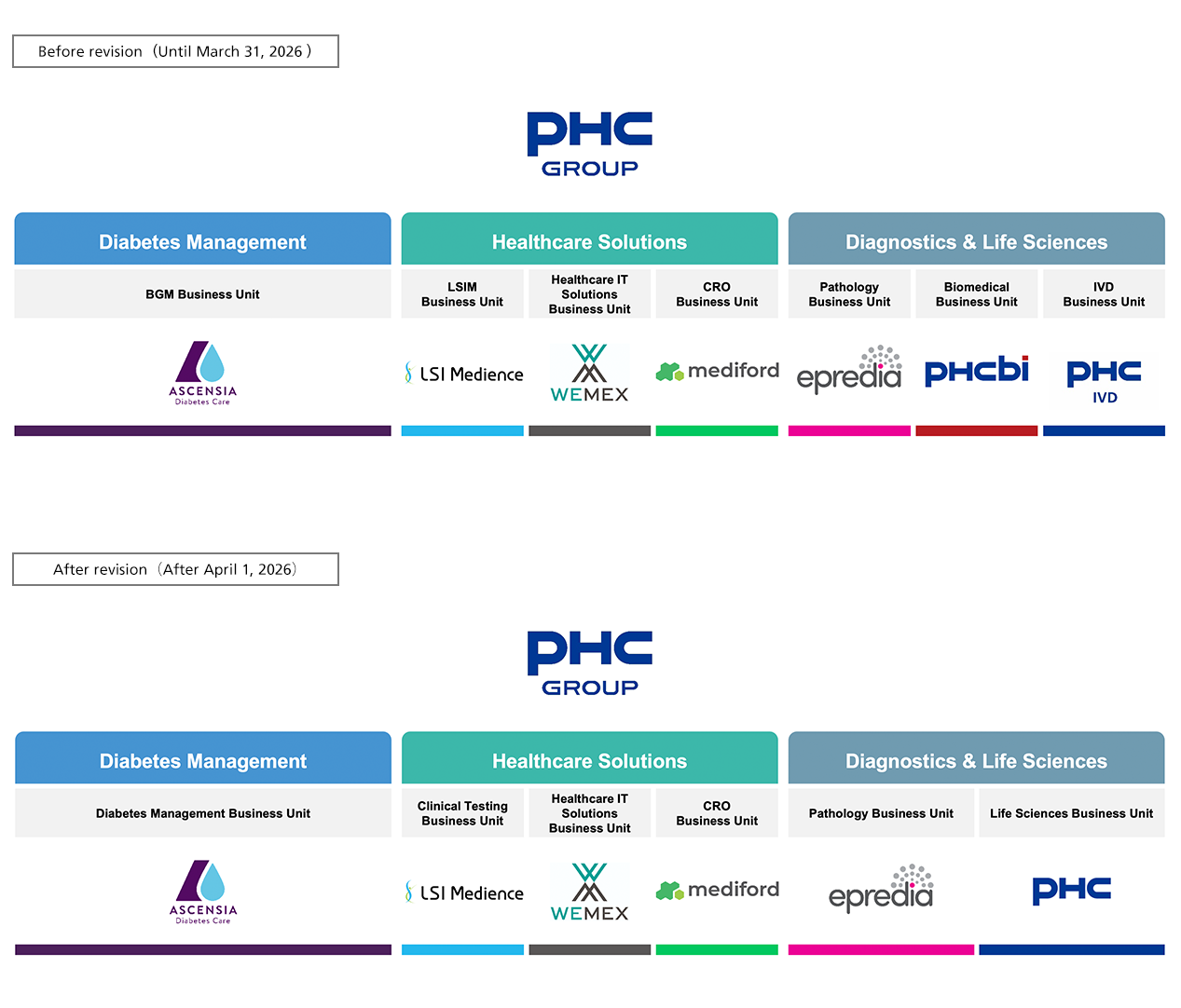 The purpose of this update is to make our business activities easier to understand by using clearer names that describe what each unit does. The brand names of the relevant businesses (Ascensia and LSI Medience) will not change.