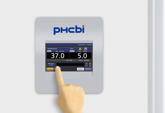 抗菌効果が高く耐腐食性も兼ね備えたPHCbi独自の銅合金ステンレス鋼を、器内表面・ダクトカバー・加湿トレイカバー・加湿トレイなどの内装部品に採用することで、扉の開閉などによって器内に侵入する汚染物質が器内表面で増殖することを防ぎ、高いコンタミネーション予防効果が発揮されます。