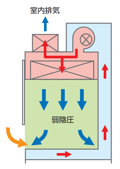 高い清浄度を保つ垂直層流方式(ラミナーフロー)