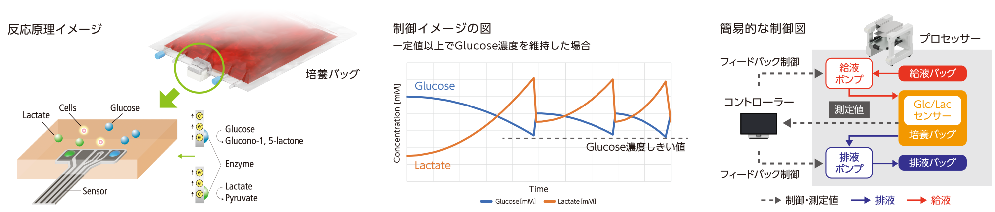 細胞培養中のグルコースと乳酸濃度を可視化することは、細胞の品質を担保するうえで重要です。