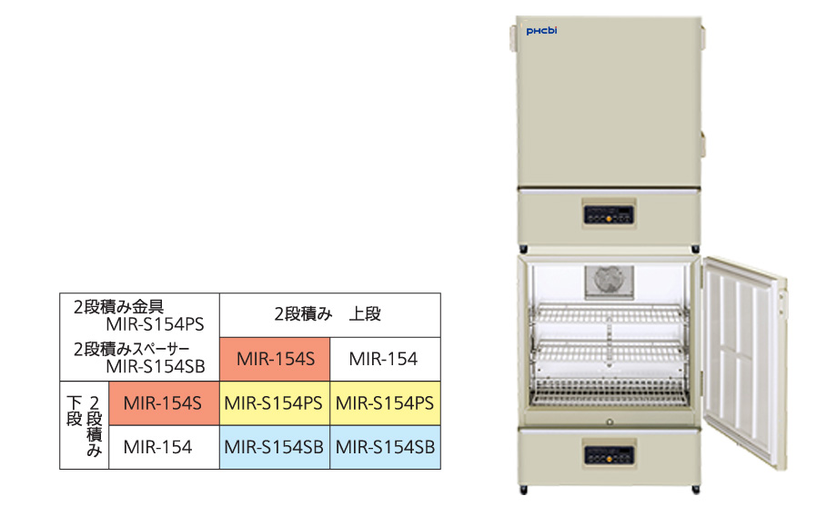 MIR-154S同士の2段積みや、MIR-154との2段積みが可能です※。 省スペースで効率よく設置、お使いいただけます。