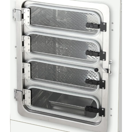 同系統のインキュベーターは、2段積み金具で上下を固定することで、本体を2段積みにできます。(下段にMIR-154を設置した場合は不可) |