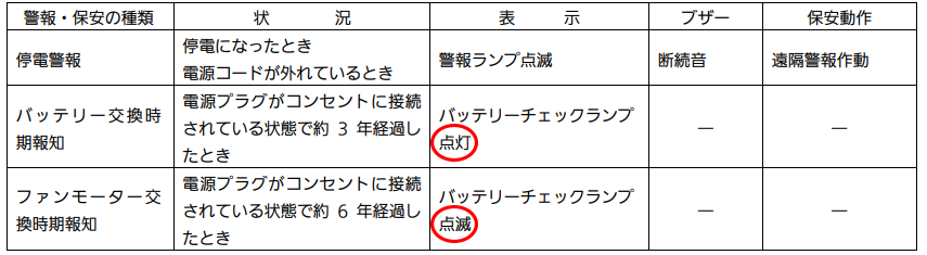 異常の発見が遅れる可能性がございます。また、バッテリーチェックランプは技術員がお伺いしバッテリーを交換しないと