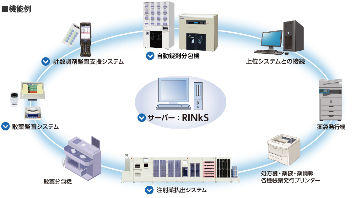 • 1台のPCで、上位システム接続や調剤機器制御から薬剤管理指導業務支援など、
