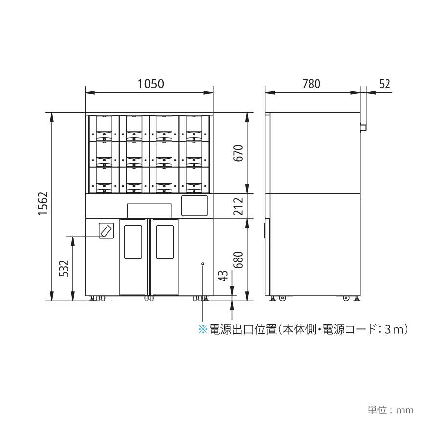 幅1050㎜ × 奥行780㎜ × 高さ1562㎜ ※