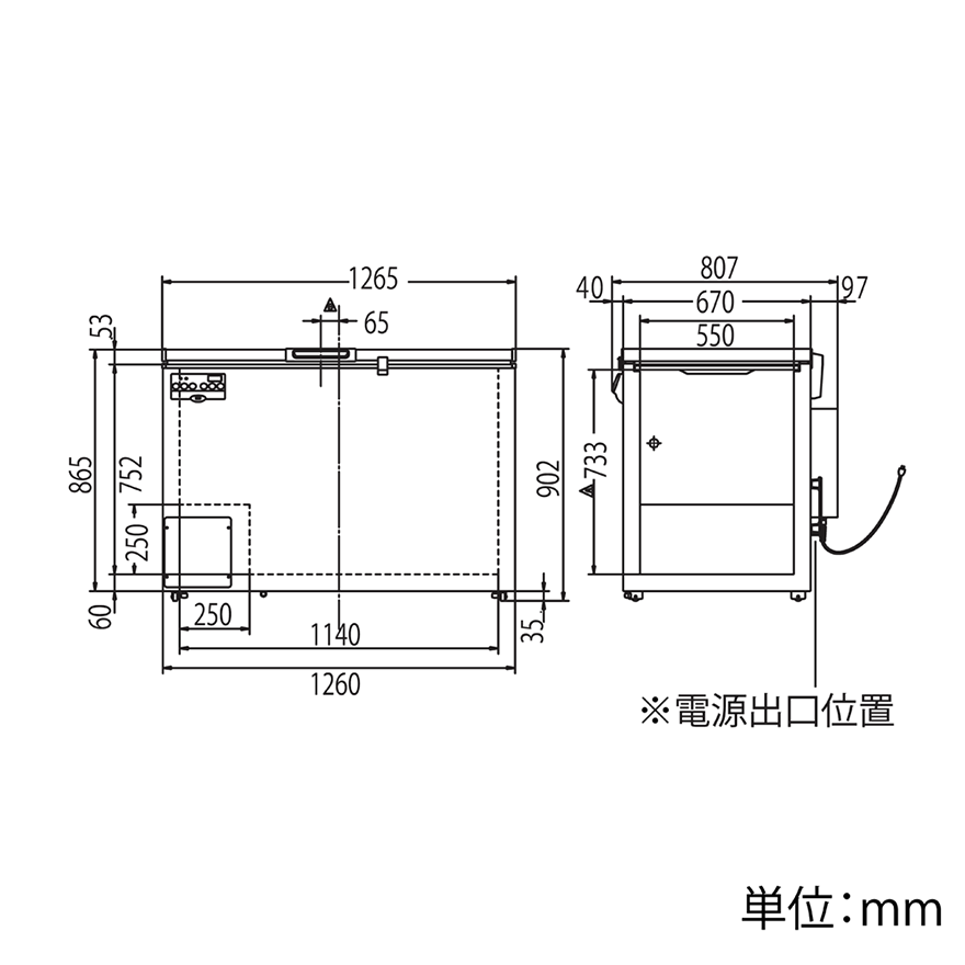 外形寸法 W1265 × D807 × H902 mm