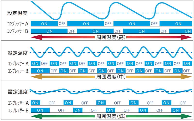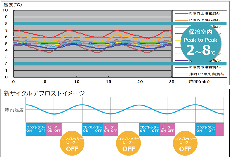 2 ℃~1 4 ℃可変(周辺温度:-5 ℃~3 5 ℃ 無負荷)