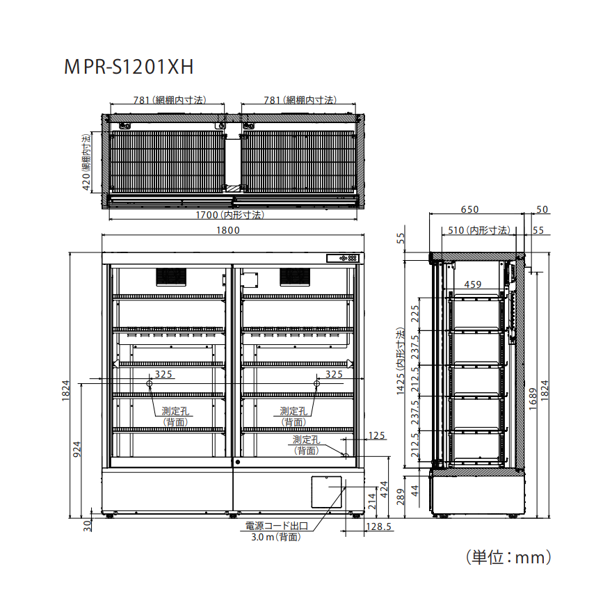 庫内温度センサー、デフセンサー、庫内用ファン、凝縮用ファン異常、LEDランプ点滅、温度表示部にエラーコードとエラーメッセージを表示、ブザー断続音による報知