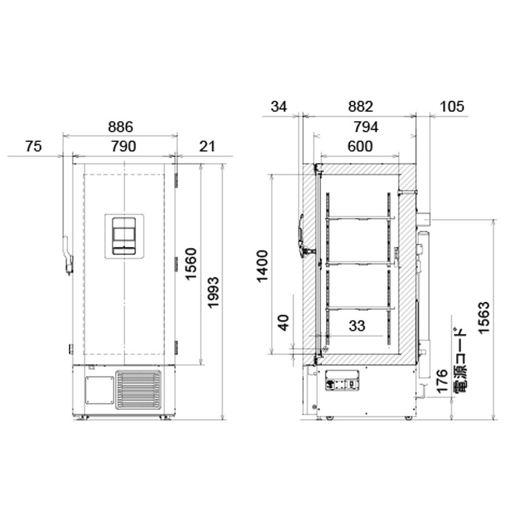 -85 ℃ ~ -50 ℃(周辺温度:5 ℃ ~ 30 ℃・無負荷)