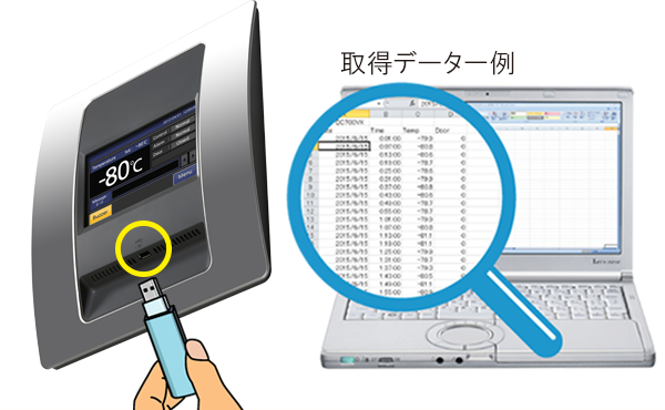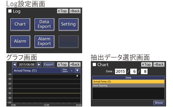 設定温度-5 ℃ ~ -40 ℃(初期設定-10 ℃) 警報設定範囲外でAlarm表示文字点滅・庫内温度表示点滅・約15 分遅延後Warning表示・ブザー断続音・遠隔警報出力