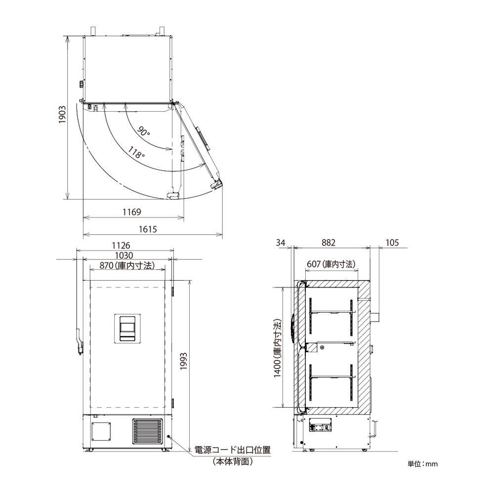 外形寸法 W1030 × D882 × H1993 mm