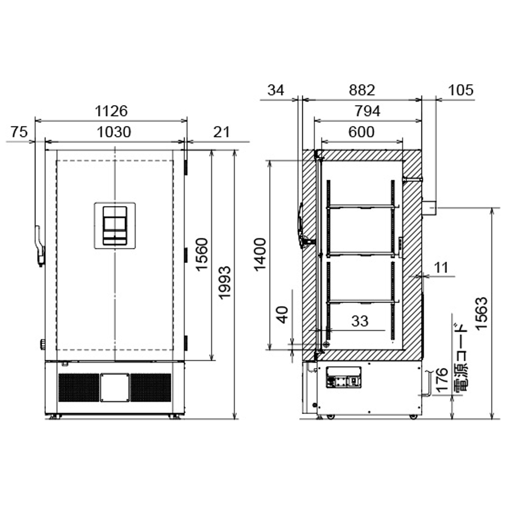 -85 ℃ ~ -50 ℃(周辺温度:5 ℃ ~ 30 ℃・無負荷)