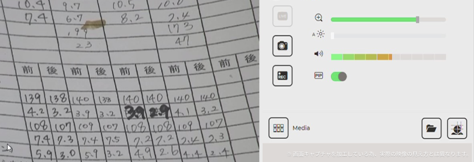 ベッドサイドに置かれた紙カルテも、遠隔側から照準を定めてズームをすることで、クリアに読み取ることが可能になりました。電子カルテを導入していない支援先病院においても、紙カルテに記載された情報を取得できる代替手段を確保できます。