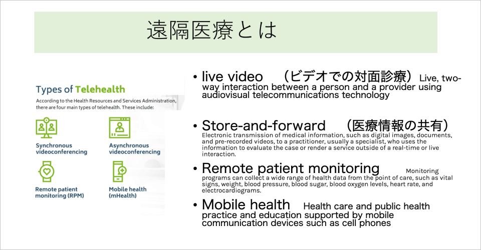 そもそも「遠隔医療」と聞くと、ほとんどの方がビデオ診療を思い浮かべると思います。