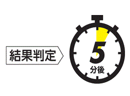 - 5分間静置後、テストスティックの判定部分に出現するラインの有無を目視で観察し判定します。