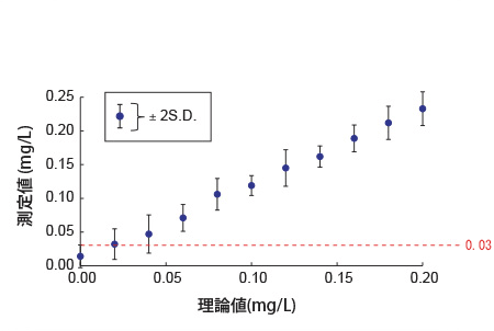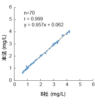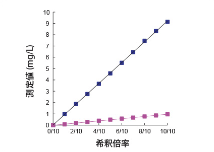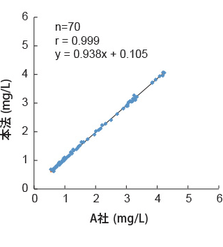 - 測定範囲が0.1~9.0mg/Lに広がりました。(従来試薬*1は0.1~8.0mg/L)