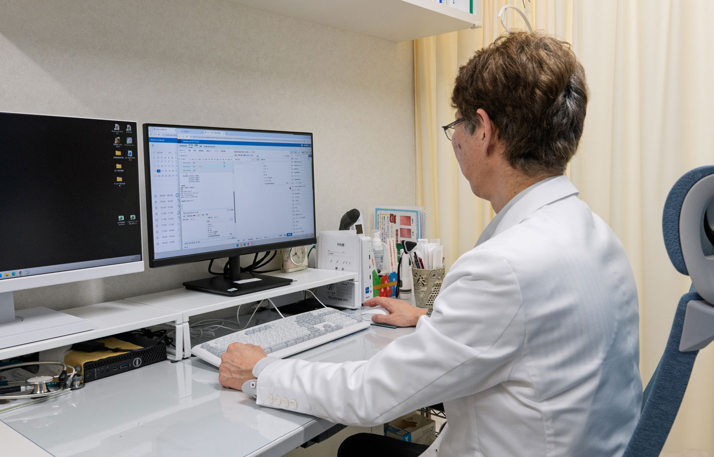 「院内の仕組みとして、ペーパーレスをどう進めていくかを第一に考えました。書類関係は放っておくとどんどん山積みになっていく。それをいかにして減らしていけるかを心がけています」(田辺先生)。