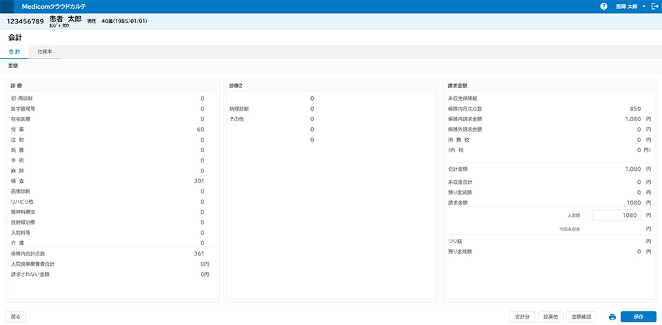 事務員の会計作業も、Medicom クラウドカルテが効率化します。