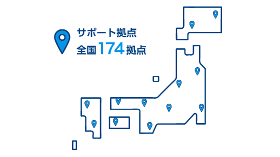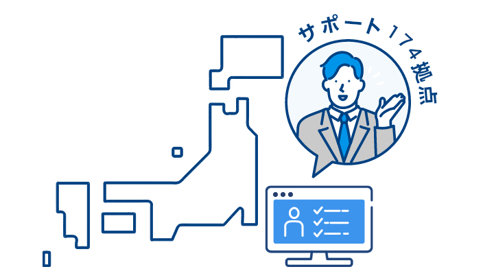 サポート拠点は業界トップクラスの174拠点。サポートは有無を選択でき、サポートつきプランなら、充実のインストラクション、システムサポート、医療事務講座などをご利用いただけます。