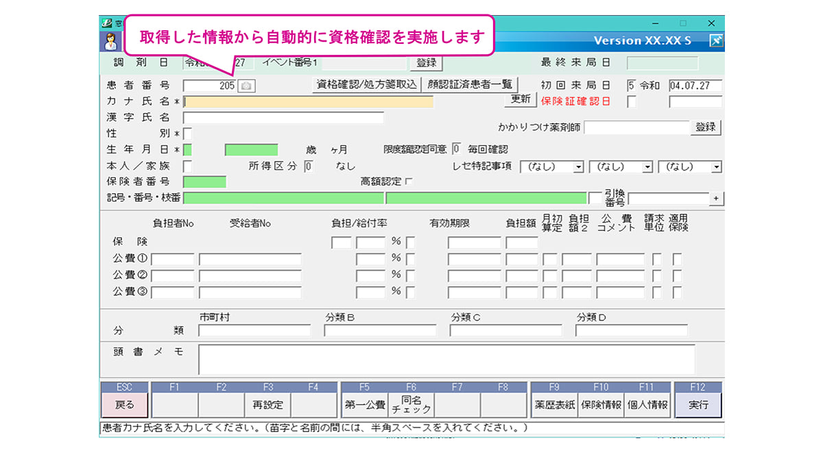 ※すでにPharnesに登録されている項目は自動反映はされません。オンライン資格確認結果と異なる場合は保険切換して、オンライン資格確認結果が反映されます