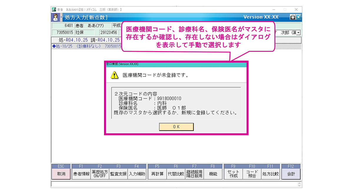 電子処方箋の医療機関情報がマスタにあるかチェックします