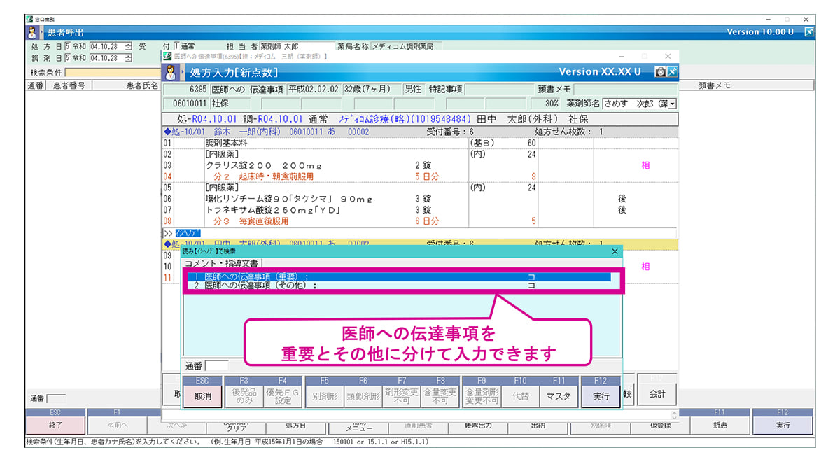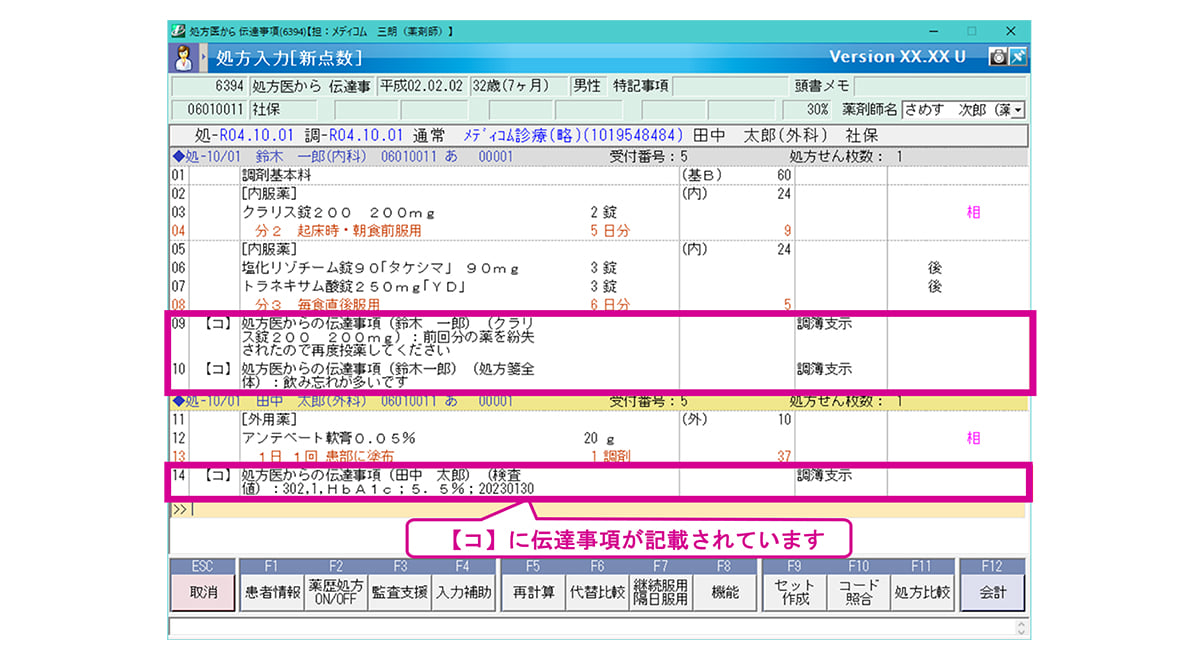 処方医からの伝達事項を確認します