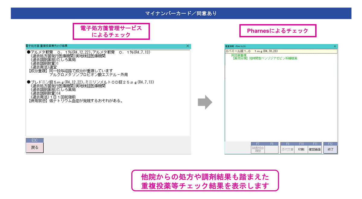 (Pharnesの重複投薬チェックと 電子処方箋管理サービスの重複投薬チェック)