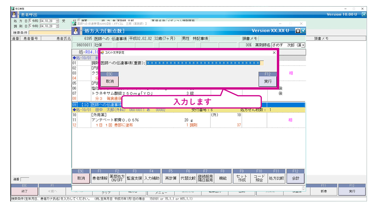 医師への伝達事項の入力