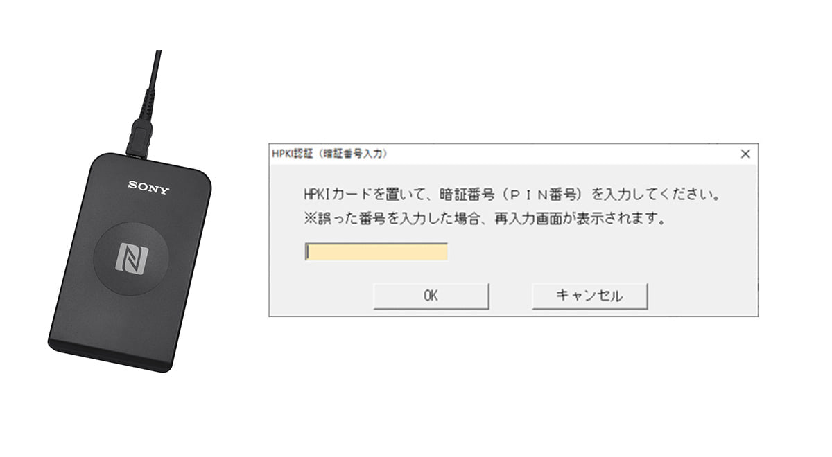 HPKIカードをカードリーダーに置き、PIN番号を入力します