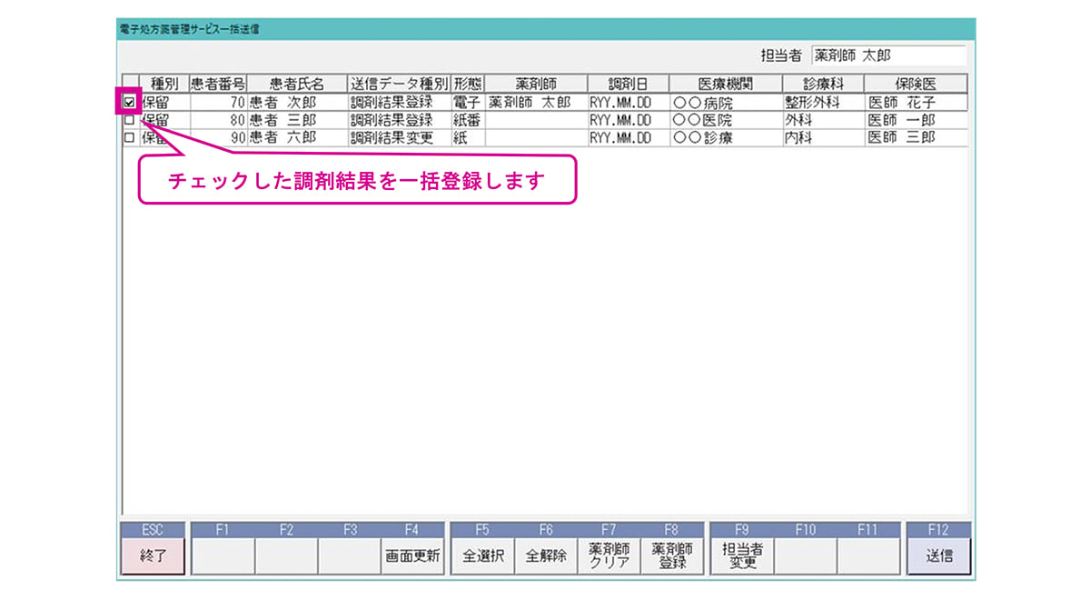 調剤結果情報の一括登録