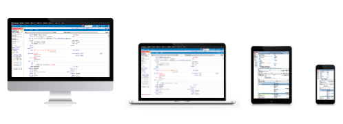 シチュエーションに合わせて、PC、タブレット、スマホから使い慣れたブラウザで利用可能です。